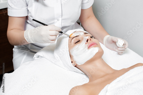 beautician applies mask to the face of woman