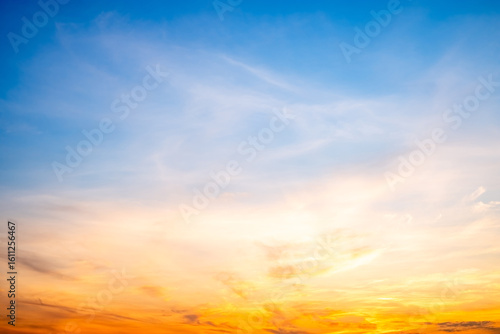 Beautiful , luxury soft gradient orange gold clouds and sunlight on the blue sky perfect for the background, take in evening,Twilight, Large size, high definition landscape photo