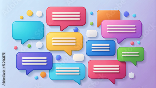 Beautiful 3d render design set of a different chatting sms template bubbles. blank colorful text bubbles Vector illustration