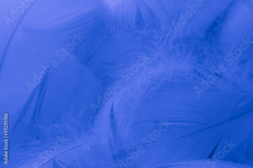 Beautiful abstract colorful purple and blue feathers on white background and soft white pink feather texture on white pattern and blue background