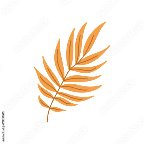 Beautiful abstract orange falling autumn branch with leaves isolated on white background. Hand drawn vector flat colored illustration. Autumn symbol, icon, decoration, hello autumn
