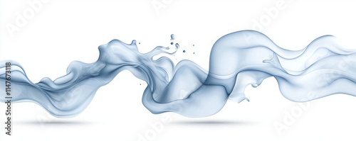 Beautiful Abstract Water Wave with Fluid Motion and Soft Blue Hues on a White Background, Perfect for Artistic Backgrounds and Creative Designs