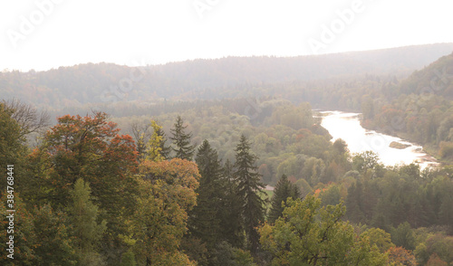 Beautiful aerial evening view of the golden autumn in Sigulda, Latvia. Europe