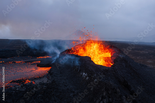 Beautiful aerial view of active volcano, Litli - Hrutur, Iceland 2023