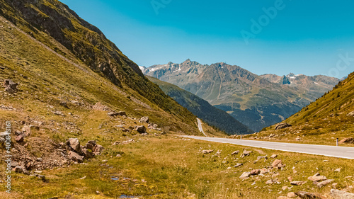 Beautiful alpine view at the famous Timmelsjoch high alpine road, Hochgurgl, Oetztal, Tyrol, Austria