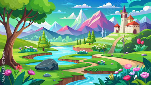 Beautiful and miraculous colors of green spring panorama landsca