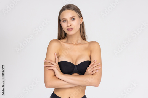 Beautiful and sexy woman wearing black lingerie isolated on white background