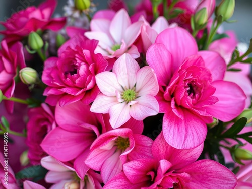Beautiful arrangement of fresh pink peonies and roses with blank space for text, beautiful, pink, vibrant