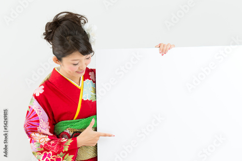 Beautiful asian kimono woman on white background