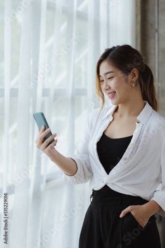 Beautiful Asian woman is a businesswoman who leads a new generation of startups, a woman who runs and manages a business plan to build confidence and stability in business, woman-led business concept.