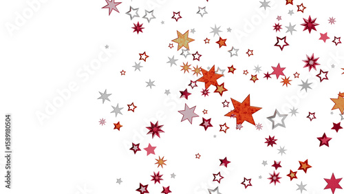 Beautiful background image featuring red, orange, and silver stars scattered on a white background. Perfect for celebrations!