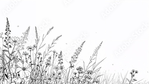 Beautiful background of black and white flowers, ideal for minimalistic flower businesses, florists, wallpapers or even coloring books.