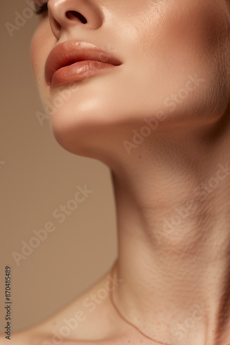 Beautiful beauty woman's neck and shoulder with perfectly soft and hydrated skin, close up detail part of the body.