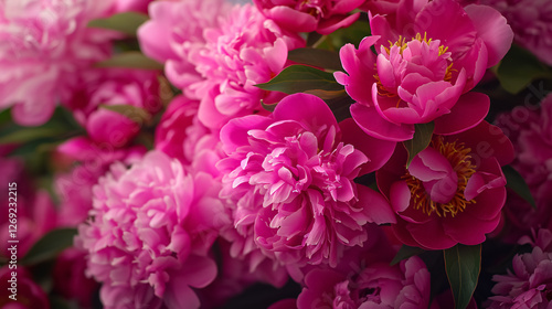 Beautiful big bouquet of bright magenta peonies close-up