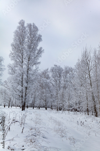 Beautiful birch forest after a snowfall.