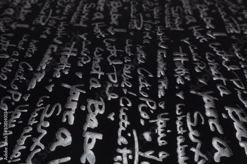 Beautiful black fabric with white pattern and textile texture background