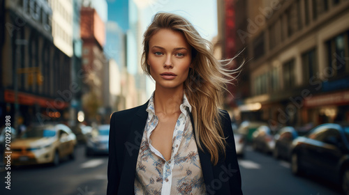 Beautiful blonde woman in stylish business clothes. Successful strong woman, office worker, manager.