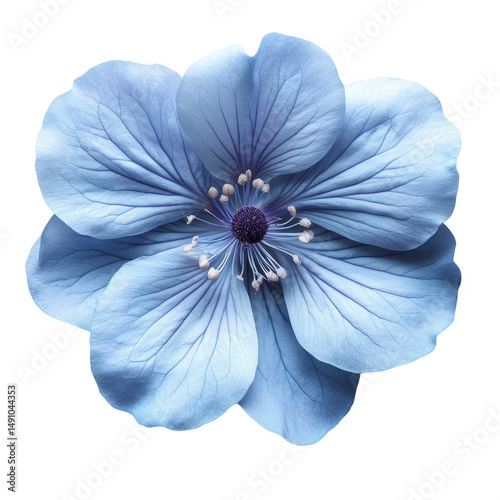 Beautiful blue flower blossom single bloom isolated on black background on transparent background