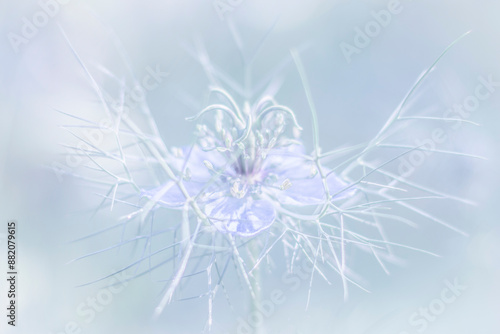 Beautiful blue flower Nigella damascena in soft color and blur style - abstract background. Love-in-a-mist. devil in the bush