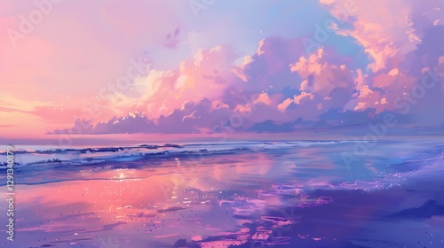 Beautiful Blue Skies with Nature, Bright Moon ,Cloud ,Beach scenery, Tree, night -Anime concept Background
