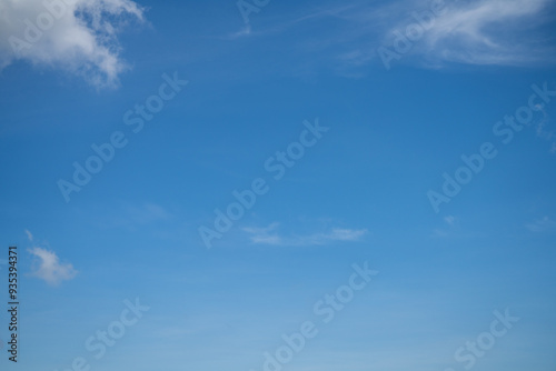 Beautiful blue sky and white cumulus clouds abstract background. Cloudscape background. Blue sky and fluffy white clouds on sunny days. Blue sky and daylight. World Ozone Day. Ozone layer. Summer sky.
