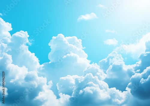 Beautiful blue sky with clouds. Wide banner background for text, design, and presentation. Beautiful blue sky with white clouds on a sunny day. Wide banner background for copy space, text, web design.