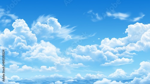 Beautiful Blue Sky with Fluffy White Clouds on a Sunny Day, Perfect for Nature and Weather-Themed Projects, Backgrounds, and Inspirational Designs