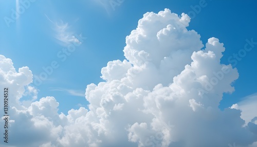 Beautiful Blue Sky with Fluffy White Cumulus Clouds - Serene and Peaceful Nature Background