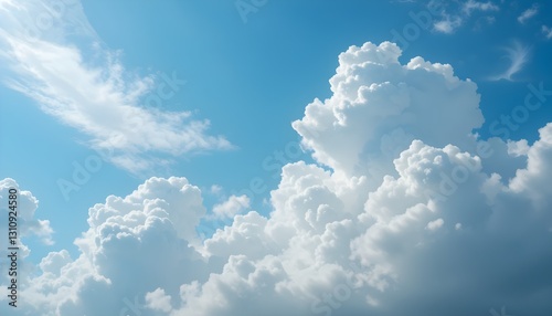 Beautiful Blue Sky with Fluffy White Cumulus Clouds - Serene and Peaceful Nature Background