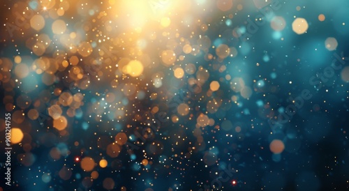 Beautiful Blurred Background with Golden Fireworks and Bokeh Lights on Blue, Creating a Celebratory Atmosphere for New Year or Events