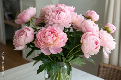 Beautiful bouquet of delicate pink peonies