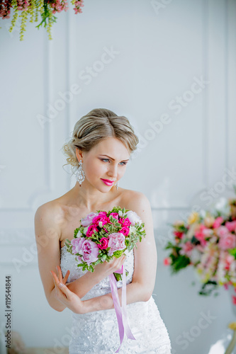 Beautiful Bride portrait wedding makeup and hairstyle with diamond crown