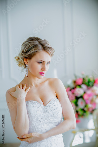 Beautiful Bride portrait wedding makeup and hairstyle with diamond crown