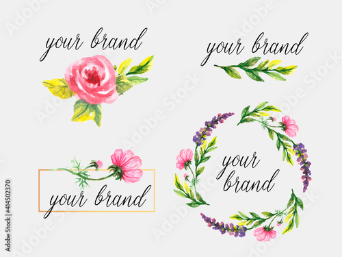 Beautiful Card with watercolor floral bouquet. Vector illustration frame