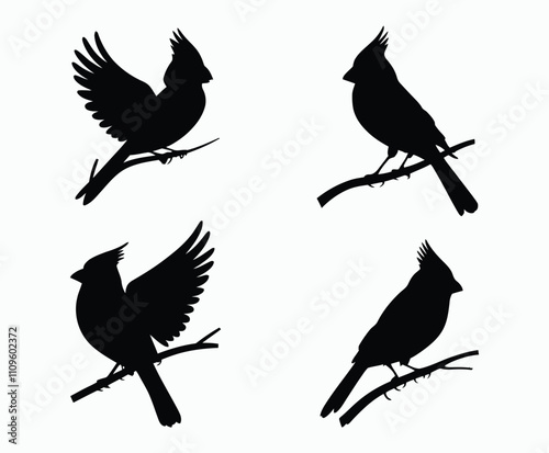 Beautiful Cardinals Silhouette Collection Vector Template for Artwork
