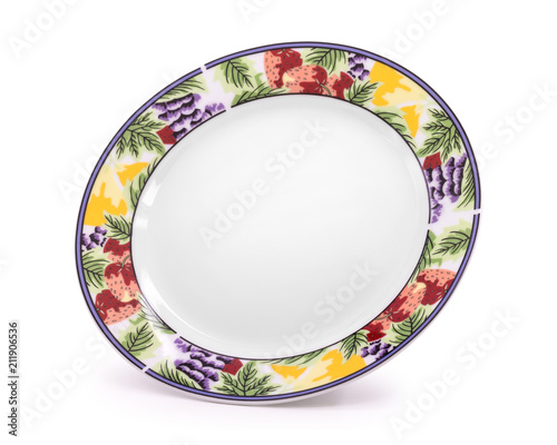Beautiful ceramic dish isolated on white background. Design plate in fruit pattern style. ( Clipping path )