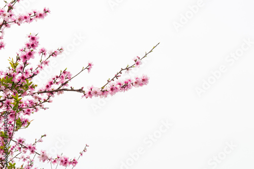 Beautiful cherry blossom sakura in spring time over blue sky.