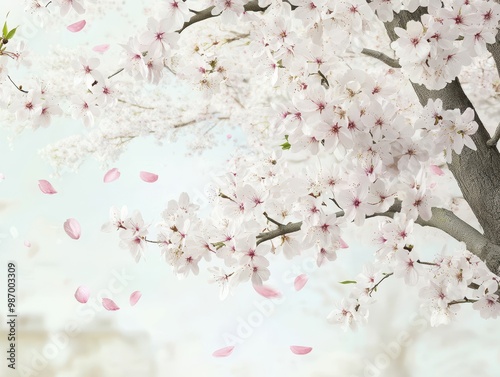 Beautiful Cherry Blossom Tree in Blooming Spring Scene