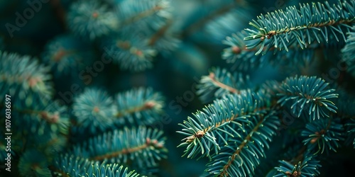 Beautiful Christmas Background with green fir tree brunch close up. Copy space