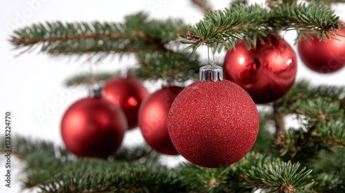 Beautiful Christmas tree adorned with shiny red ornaments celebrating the holiday season in a warm indoor setting