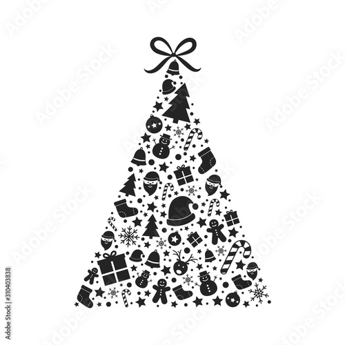 Beautiful Christmas tree made of festive ornaments. Vector
