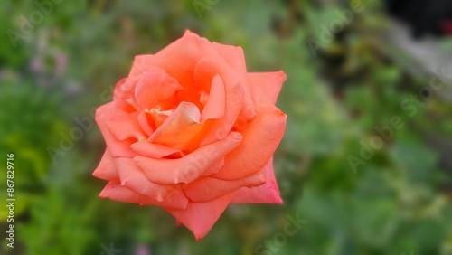 beautiful classic aromatic pink tea roses bud blooming in garden at sunny morning. close up