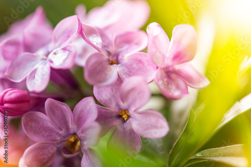 Beautiful close-up lilac flowers on the green bokeh background. Spring flowers.