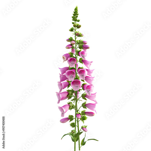 Beautiful Close-Up of a Vibrant Pink Foxglove Flower Isolated on White Background