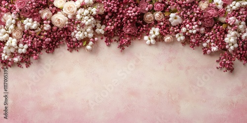 Beautiful Closeup of Red Roses and Delicate Blossoms against a Soft Pink Background for Floral Decor and Design Inspiration