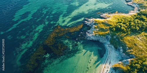 Beautiful coastal shoreline with rocky outcrops and biodiverse marine ecosystems.