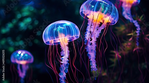 Beautiful color of jellyfish in underwater in the dark blue ocean water