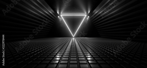 Beautiful composition of white neon lights on a black background. 3d rendering image.