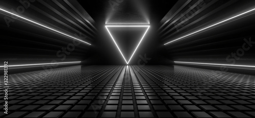 Beautiful composition of white neon lights on a black background. 3d rendering image.