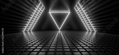 Beautiful composition of white neon lights on a black background. 3d rendering image.